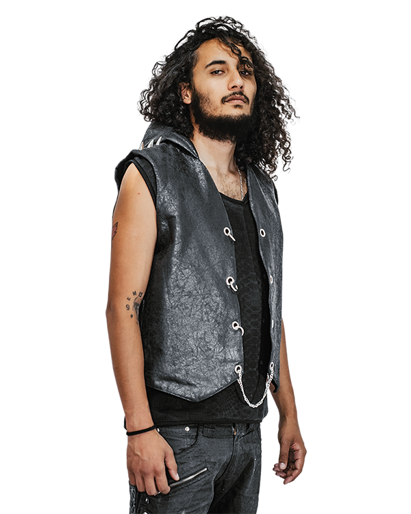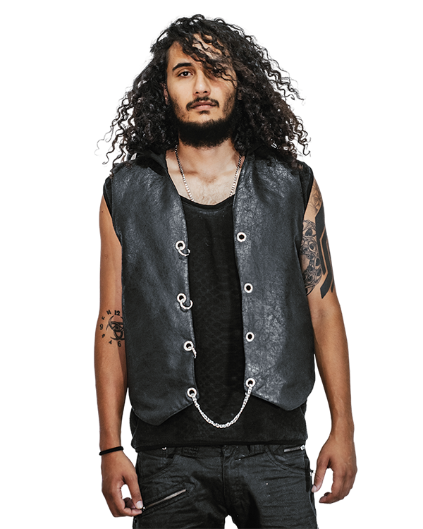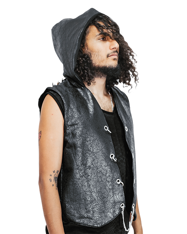Chaleco Noj. Chaleco negro con detalles metálicos en tono plata. Piezas limitadas.
